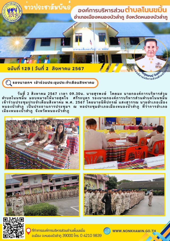 วันที่ 2 สิงหาคม 2567 เวลา 09.30น. นายสุรพงษ์ โคตมะ นายกองค์การบริหารส่วนตำบลโนนขมิ้น มอบหมายให้นายสุดใจ ศรีระบุตร รองนายกองค์การบริหารส่วนตำบลโนนขมิ้น เข้าร่วมประชุมประจำเดือนสิงหาคม พ.ศ. 2567 โดยนายนิติปกรณ์ แสงสุวรรณ นายอำเภอเมืองหนองบัวลำภู เป็นประธานการประชุมฯ ณ หอประชุมอำเภอเมืองหนองบัวลำภู ที่ว่าการอำเภอเมืองหนองบัวลำภู จังหวัดหนองบัวลำภู 13 สิงหาคม 2024 admin004 ข่าวประชาสัมพันธ์ทั่วไป 0 FacebookFacebookXXLINELine